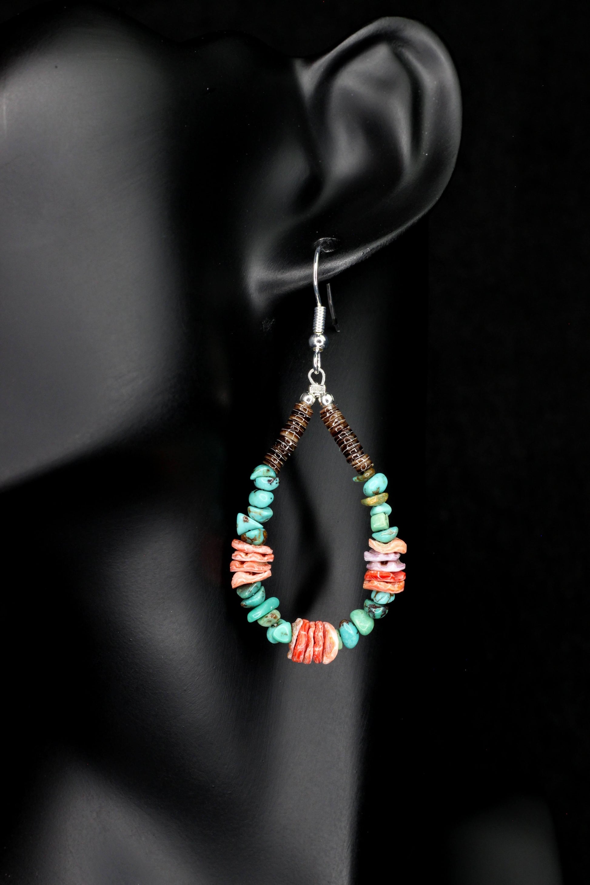 These beautiful earrings are crafted by Navajo jewelry artist Alta of the Kinyaa’áanii (Towering House) Clan. They showcase Alta’s lifelong dedication to her craft, learned from her mother in Yah-Ta-Hey, New Mexico.