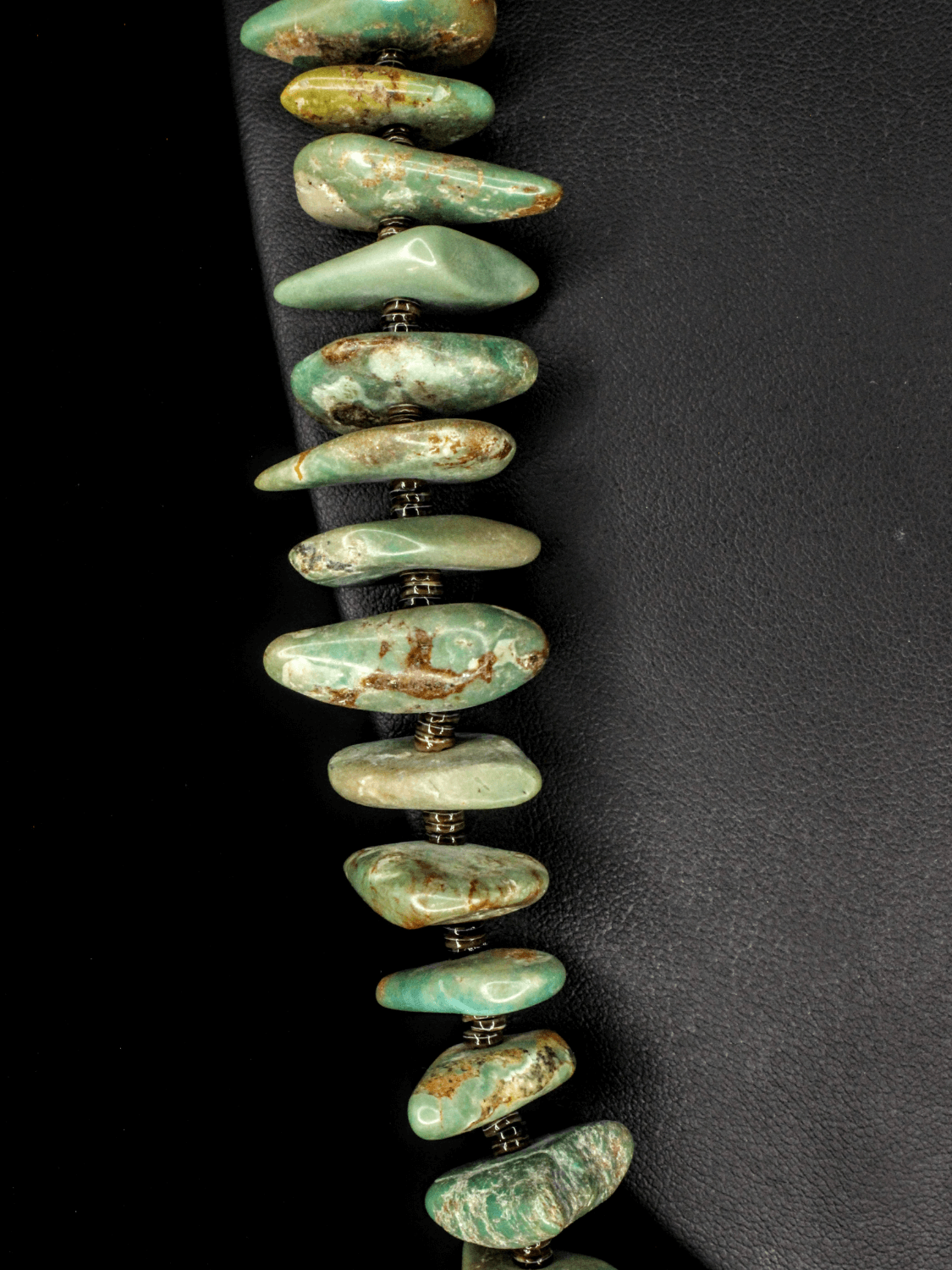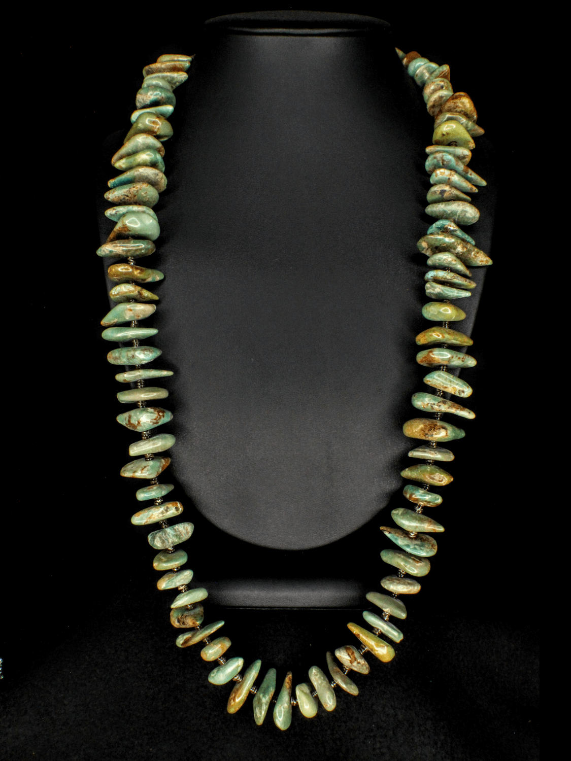Chocolate Baby Olive Shell and Large Turquoise Nuggets on Traditional String