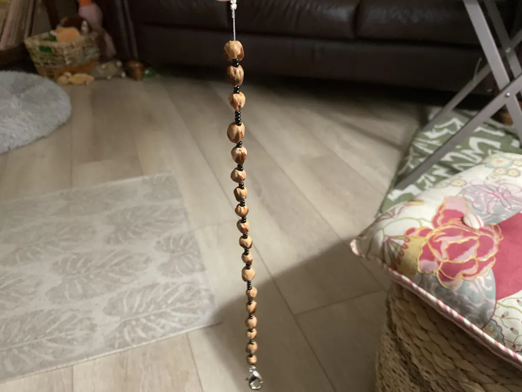 Once the squirrel or chipmunk discards the berry. It is peeled, hollowed out the shell, and left as the perfect bead.