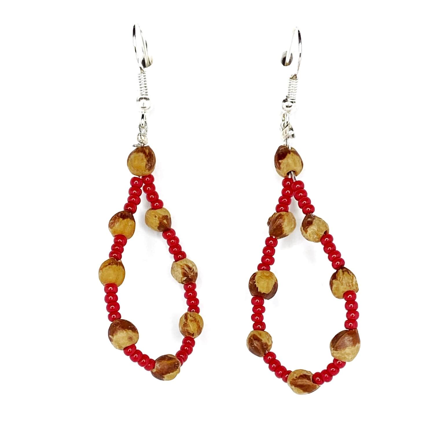 Our Ghost Bead Artist, Ethel Begay, uses cedar beads and glass beads for the colors. The earrings pair very well with our cedar bead necklaces, chokers, and bracelets.