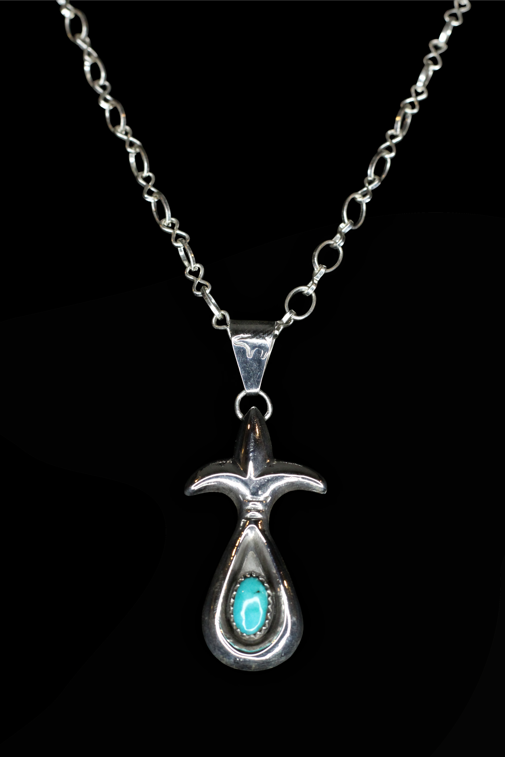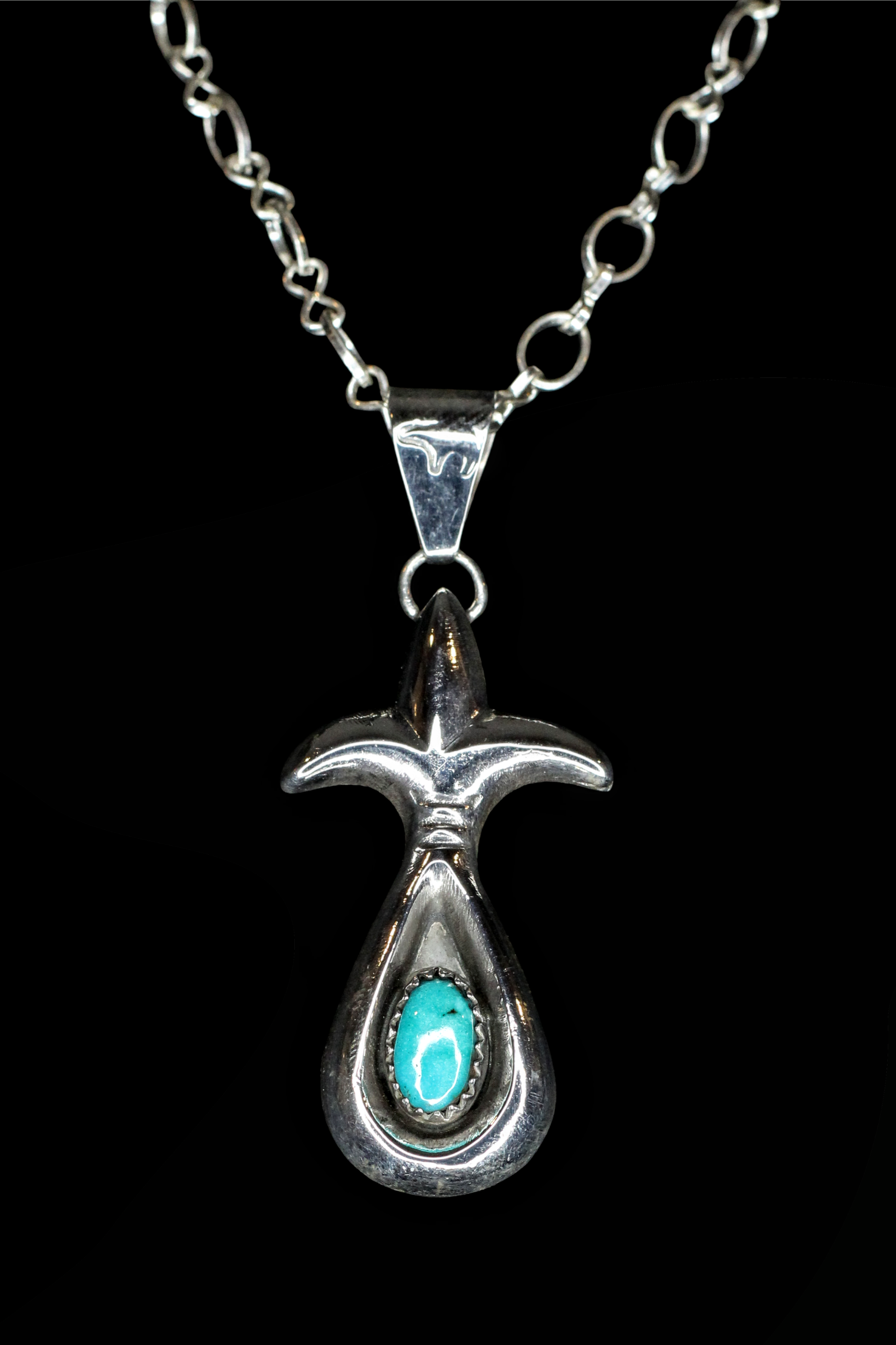 Each pendant is crafted entirely by hand by Roy Huskie Jr., a master Navajo silversmith who began working at just fifteen years old. Raised in Tuba City on the Navajo Nation, Roy learned traditional silversmithing from his father and continues the artistry of his Todích'íí'nii (Bitter Water) clan.